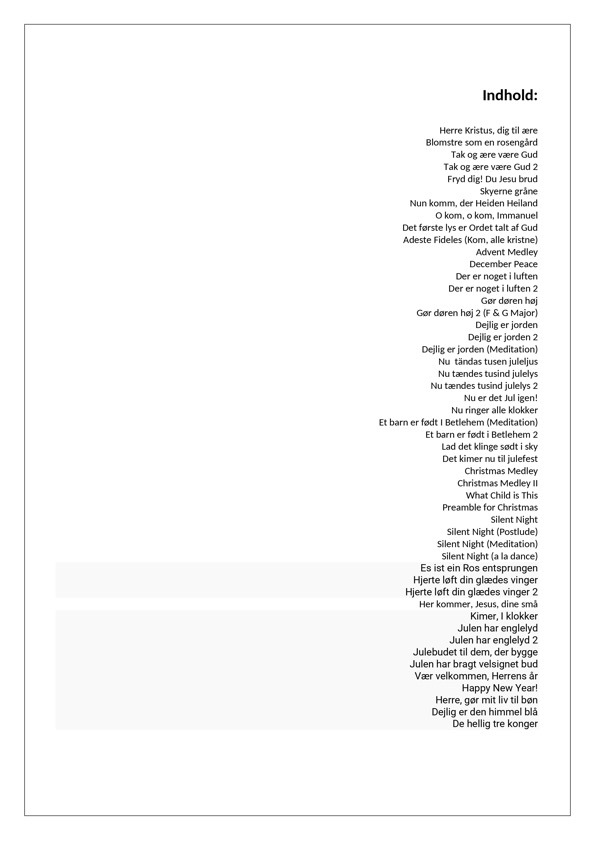 49 pieces (110 pages) based on Danish, Swedish, German and English hymns for Advent & Christmas, free compositions and Medleys
