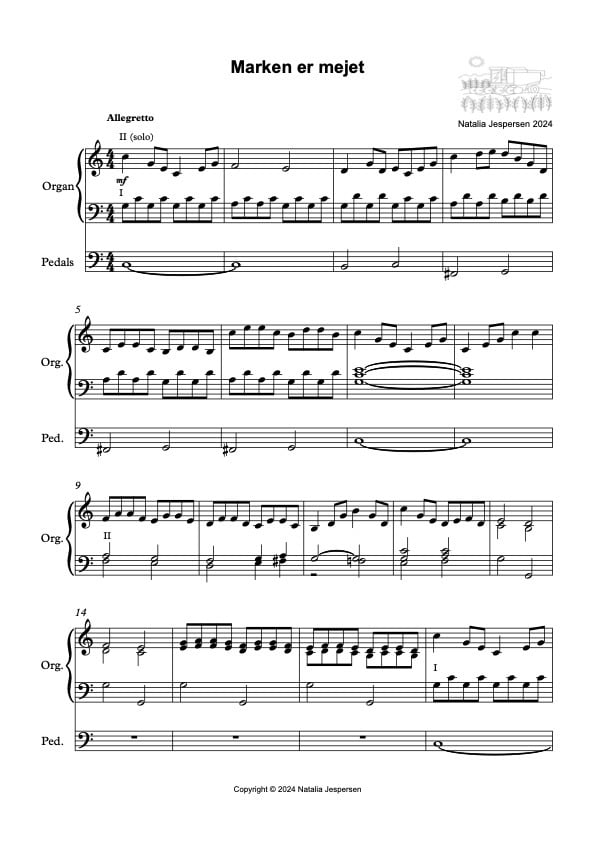Festlig orgelstykke over "Marken er mejet" for 2 manualer og pedal